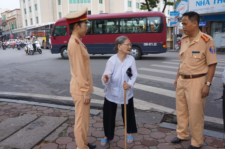 Dường như muốn sang đường để gặp CSGT nhưng bà cụ không đi được bởi dòng phương tiện vẫn đang hối hả không ngừng. Thấy sự lạ, Thiếu úy Hồng Anh liền giao nhiệm vụ chỉ huy cho một đồng nghiệp và chạy lại giúp đỡ bà cụ sang đường.