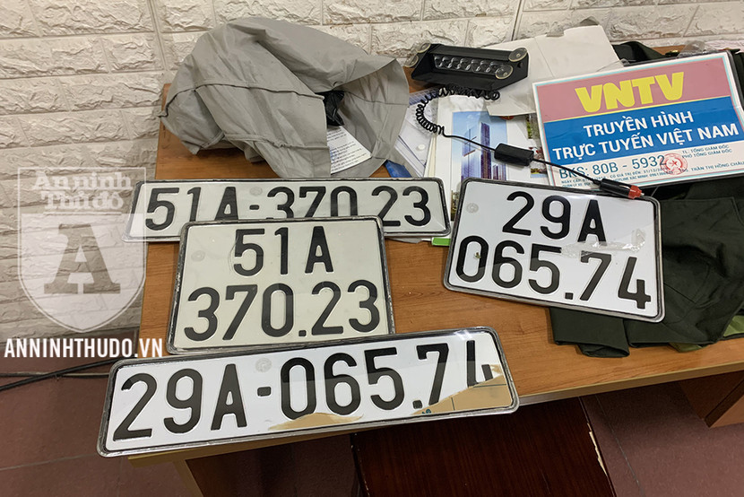 Cảnh sát phát hiện trong chiếc xe ô tô còn có cảnh phục và rất nhiều BKS khác