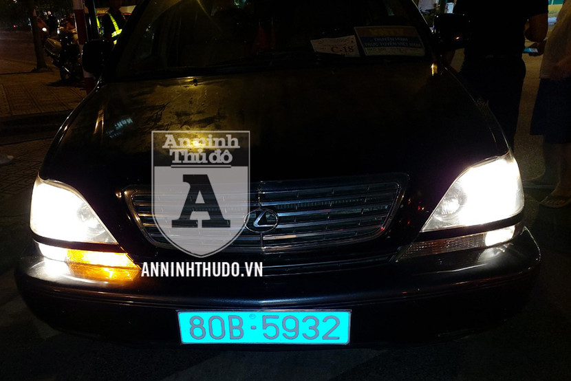 Đến 21h30, tổ công tác phát hiện một xe ô tô hiệu Lexus gắn biển nền xanh 80B-5932 kèm còi hụ, đèn nháy và có biểu hiện nghi vấn, nên tiến hành dừng xe để kiểm tra.