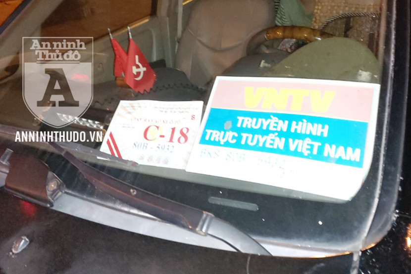 Tại chốt 141, cảnh sát ghi nhận ở mặt kính xe còn có các phù hiệu khác nhau, trong đó có phù hiệu ghi "VNTV - Truyền hình Trực tuyến Việt Nam". Trong quá trình kiểm tra hành chính, cán bộ của tổ Y23/141 còn thu được một bộ cảnh phục Công an Nhân dân đính bảng tên của lái xe, cầu vai thể hiện hàm thượng tá, mũ kê-pi, các bộ BKS xe 29A-067.74, 51A-370.23.