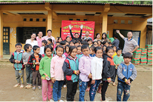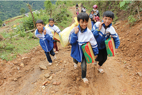 Chuyến đi của chúng tôi bắt đầu từ 3h30 sáng, khi người Hà Nội vẫn còn chìm trong giấc ngủ bình yên của một ngày cuối tuần. Tôi háo hức đến nỗi cả đêm chẳng thể ngủ nổi, cứ nghĩ đến chuyến đi, nghĩ đến những đứa trẻ. Sau gần 5 tiếng đồng hồ vượt những đoạn đường núi đầy đá hộc, có đoạn đường trơn trượt, sình lầy với những rãnh nước xẻ dọc đường rộng và sâu đến cả nửa mét… vì ngày hôm trước ở xã Phan Thanh vừa có mưa, chúng tôi buộc phải dỡ hàng, để lại ô tô ở chân núi.