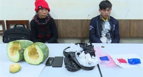 Đáng chú ý, số ma túy gồm 1 bánh heroin, khoảng 260 viên ma túy tổng hợp được các đối tượng “nhồi” trong 1 quả bí kích cỡ lớn nhằm che mắt lực lượng chức năng.