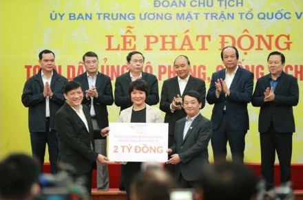 Bà Eriko Sato – Trưởng phòng Tiếp Thị Người Tiêu Dùng của Diana Unicharm – trao ủng hộ qua Ủy Ban Trung Ương Mặt Trận Tổ Quốc Việt Nam