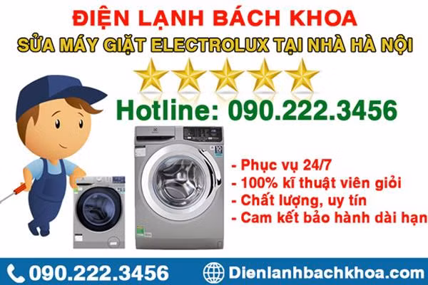 Dịch vụ sửa chữa máy giặt Electrolux tại nhà ở Hà Nội của chúng tôi phục vụ quý khách “Sửa chữa tại nhà – Lắp đặt tận nơi”, sẽ giúp bạn tiết kiệm công sức, thời gian và tiền bạc. Máy giặt của bạn gặp sự cố hãy liên hệ chúng tôi ngay qua điện thoại 090.222.3456 để trải nghiệm dịch vụ sửa chữa, bảo hành nhanh chóng và chuyên nghiệp. Điện lạnh Bách Khoa làm cả ngày lễ và chủ nhật - CSKH khách hàng 24/7 sửa nhanh tại nhà quý khách, liên hệ 10 phút kỹ thuật viên đến tận nơi.