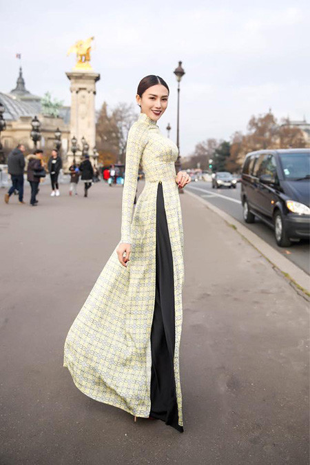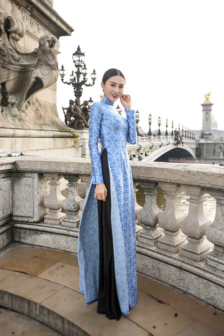 Trong bộ ảnh này, người đẹp hóa thân thành quý cô Sài gòn xưa với tà áo dài truyền thống kết hợp quần lụa đen. Những tà áo lấy phom cổ điển làm chủ đạo khắc họa rõ nét vẻ đẹp đằm thắm, duyên dáng của người phụ nữ Việt.