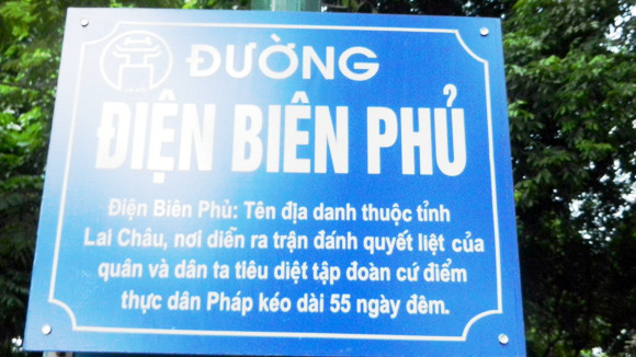 Ấy vậy mà trong dự án gắn thêm biển chú giải cho tên đường, phố ở Hà Nội, đơn vị thực hiện đã tự ý di chuyển địa danh Điện Biên Phủ sang tỉnh Lai Châu chỉ bằng một đoạn miêu tả ngắn ngủi: “Điện Biên Phủ: Tên địa danh thuộc tỉnh Lai Châu, nơi diễn ra trận đánh quyết liệt của quân và dân ta tiêu diệt tập đoàn cứ điểm thực dân Pháp kéo dài 55 ngày đêm”.