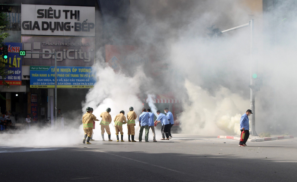 Diễn tập chữa cháy lớn...bắt nguồn từ cửa hàng xe máy