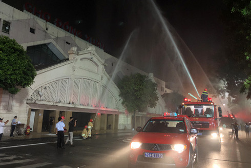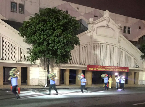 Giả định tình huống cháy xảy ra vào lúc 19h tối, tại dãy sạp hàng khu A1 chợ Đồng Xuân. Chất liệu cháy chủ yếu là hàng khô, gỗ, vải, lụa...Nguyên nhân cháy cho chập điện.