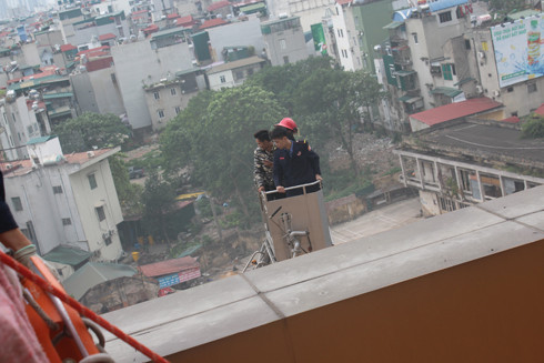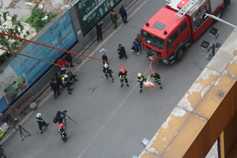 Lực lượng cứu nạn dùng thang dây nghiêng cứu người mắc kẹt từ trên cao xuống