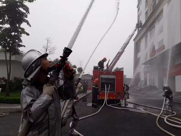 Tình huống giả định được đặt ra là khoảng 9h cùng ngày, ngọn lửa bùng phát từ tầng hầm để xe máy của chung cư, khiến cư dân hoảng loạn. Đội phòng cháy, chữa cháy cơ sở nhanh chóng tổ chức chữa cháy ban đầu, sơ tán người và tài sản. Tuy nhiên, do ngọn lửa lan nhanh, tạo ra nhiều khói, khí độc nên vẫn còn nhiều người bị mắc kẹt tại tầng dịch vụ và căn hộ trong chung cư.