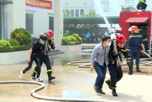 Tình huống giả định được đặt ra là Khu vực nhà văn phòng của công ty xảy ra cháy, trong khu vực này có các chất dễ cháy như thiết bị điện, gỗ, vải, giấy, nhựa... đám cháy phát triển nhanh, bên trong đám cháy có 02 nạn nhân còn mắc kẹt không có khả năng thoát ra ngoài.