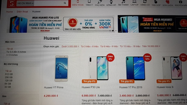 Tương tự, Thế giới di động cũng công bố giảm giá nhiều mẫu điện thoại Huawei tầm trung như: Huawei P30 Lite, Huawei Nova 3i, Huawei Y7 Pro. Giá bán mỗi chiếc giảm 500.000 đồng so với trước đó.