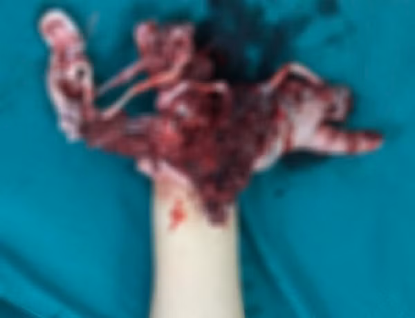 Bệnh nhân nhập viện với bàn tay bị dập nát toàn bộ do điện thoại phát nổ