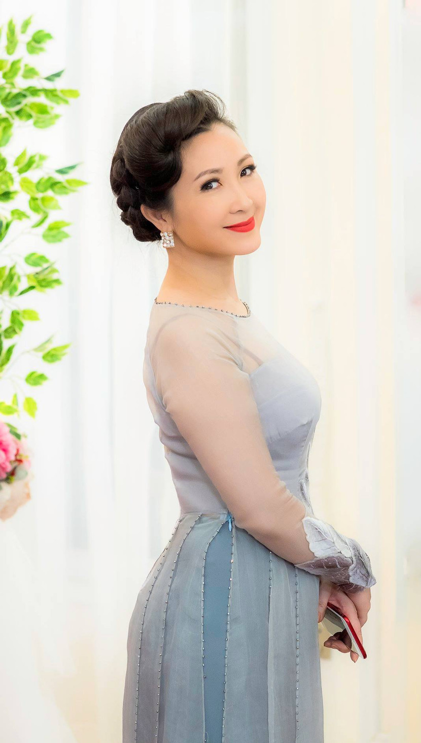 - Tôi đã U50 nên không còn xông xáo khẳng định bản thân hay sự nghiệp gì ghê gớm nữa. Tôi chỉ đang duy trì những thứ mình có: công việc, tổ ấm, nhan sắc. Tôi không thuộc tuýp người kỳ vọng nhiều vào tương lai nên thấy mọi thứ khá yên ổn. Có lẽ điều này xuất phát từ chính tính cách thích hướng nội của tôi. Tôi may mắn được sinh ra trong cái nôi nghệ thuật, ba là nhạc sĩ nên lửa nghệ thuật đã được bố truyền cho mình từ nhỏ. Đàn, hát, diễn kịch… tôi đều làm được từ khi còn bé nên tôi nghĩ nghệ thuật nó là định mệnh. Sau này khi mình đi học hát, đi đóng phim thì xong việc tôi cũng chỉ về nhà, không tụ tập bạn bè và chỉ biết có gia đình. Có gia đình rồi tôi vẫn sống đúng với tính cách đó, tôi thấy thoải mái khi “thu mình” trong mái ấm của mình.