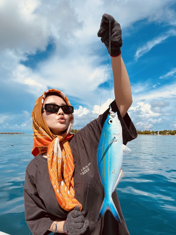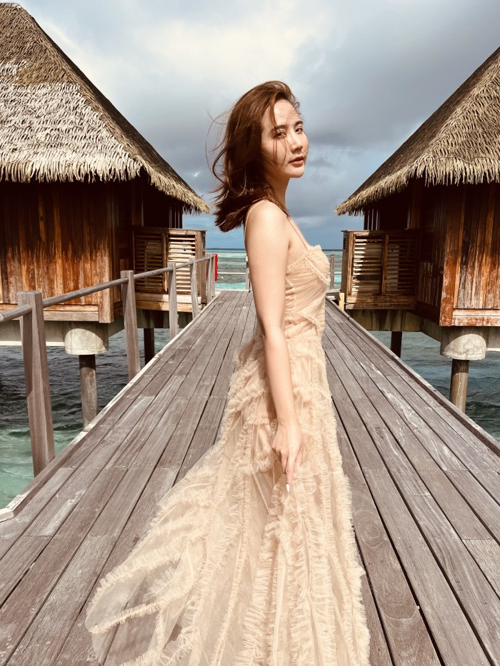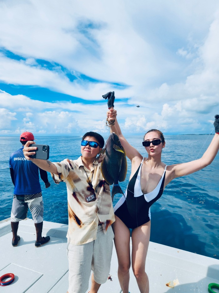 | Diễn viên Minh Huyền và host Châu Châu trong chuyến đi đến Maldives |