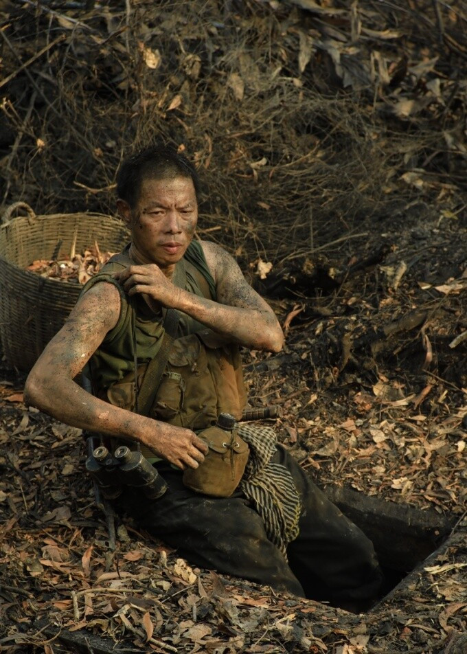 Rồi tôi cũng rèn luyện thể thao, tập tành làm sao để mồ hôi ra càng nhiều càng tốt. Khi ra đến phim trường, từng cảnh quay đều là trải nghiệm đáng nhớ với tôi và cả đoàn phim. Thực tế là ai cũng “máu” lắm, tất cả đều nỗ lực hết mình để có được những cảnh quay chân thực nhất, không ai than vãn một câu nào. Ngay cả khi quay giữa thời tiết nóng nực, đạo diễn sợ mọi người mệt vì ra mồ hôi nhiều nên định bơm không khí vào làm mát địa đạo. Thế nhưng mọi người đều không đồng ý mà muốn cảm nhận cái nóng thật sự, muốn mồ hôi túa ra cho chân thực. Thậm chí có khi còn tự lại gần cái đèn cho nóng để mồ hôi túa ra nhiều hơn.