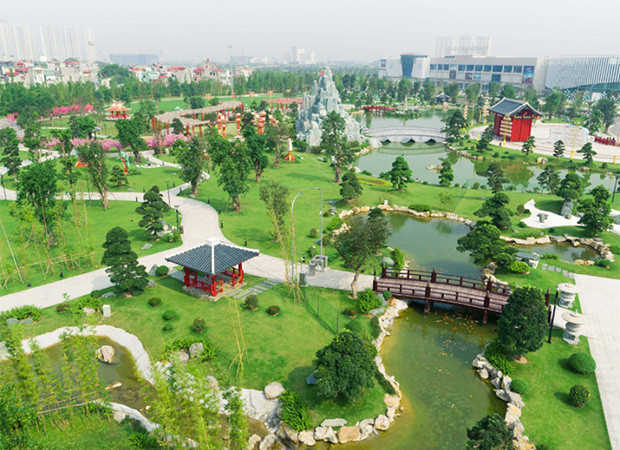 Chủ đầu tư dành hẳn 6ha để xây dựng một khu vườn “chuẩn” Nhật đến từng chi tiết, thường chỉ xuất hiện tại những dự án nghỉ dưỡng cao cấp thế giới.