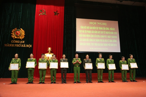 Thiếu tướng Đinh Văn Toản trao Bằng khen của Chủ tịch UBND thành phố tặng các tập thể, cá nhân lập thành tích xuất sắc trong đợt cao điểm