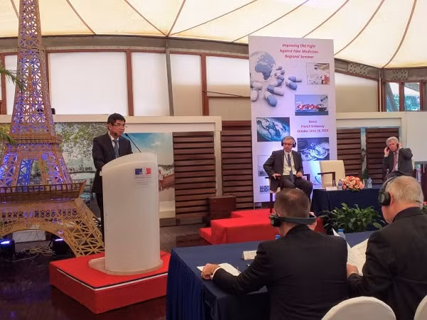 Sáng nay, 14-10, tại Đại sứ quán Pháp ở Hà Nội, Viện nghiên cứu quốc tế về chống thuốc tân dược giả (IRACM) và Cục Hợp tác Quốc tế Bộ Nội vụ Pháp đồng tổ chức hội thảo khu vực về chủ đề phòng ngừa và đấu tranh chống buôn bán thuốc tân dược giả.