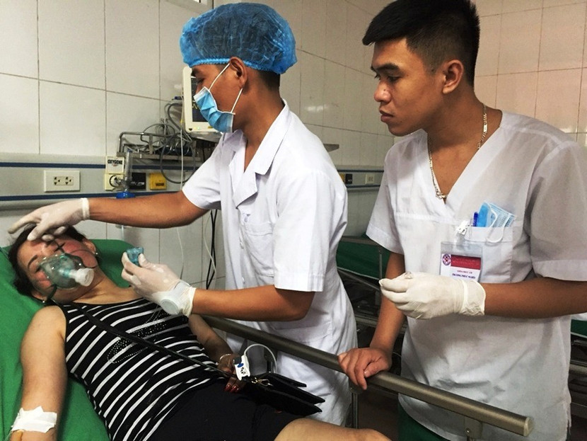 Các bác sĩ Bệnh viện 115 Nghệ An cho biết, cả 5 nạn nhân đều nhập viện trong tình trạng bỏng đường hô hấp do ngạt khói xăng. Riêng chị Trang, ngoài suy hô hấp, còn bị đa chấn thương, bỏng ở chân, tay.