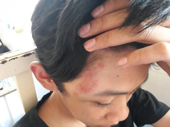 Em Lâm bị đánh, nhiều vết thương xuất hiện trên mặt.