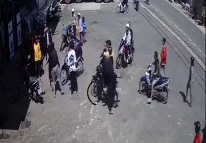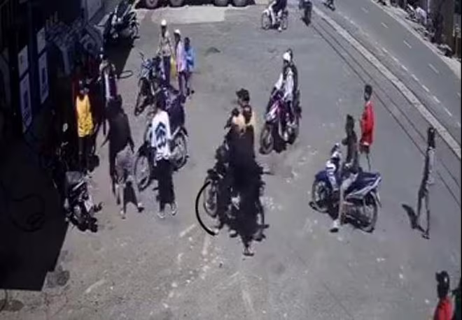 Ảnh cắt từ clip ghi lại hình ảnh em Lâm bị đánh hội đồng ở cây xăng