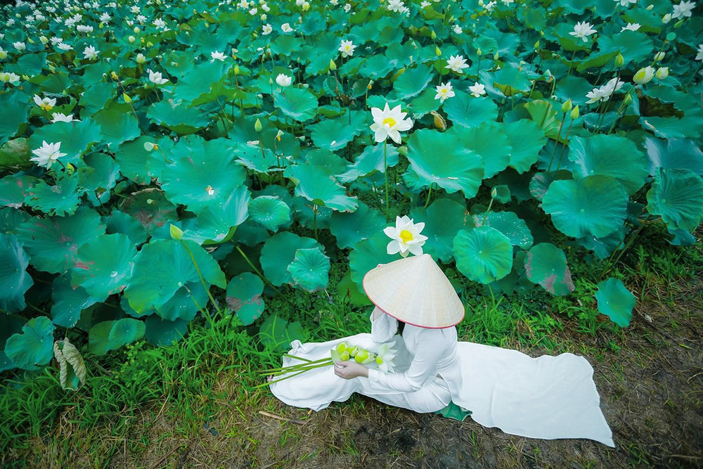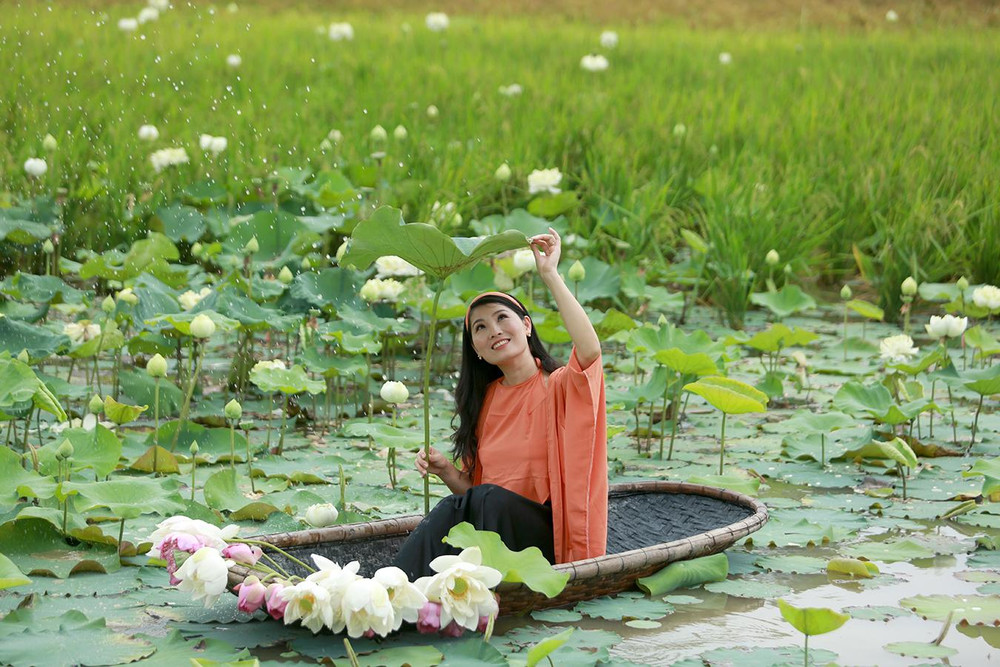 Thiếu nữ Hà thành nô nức khoe sắc cùng mùa sen nở
