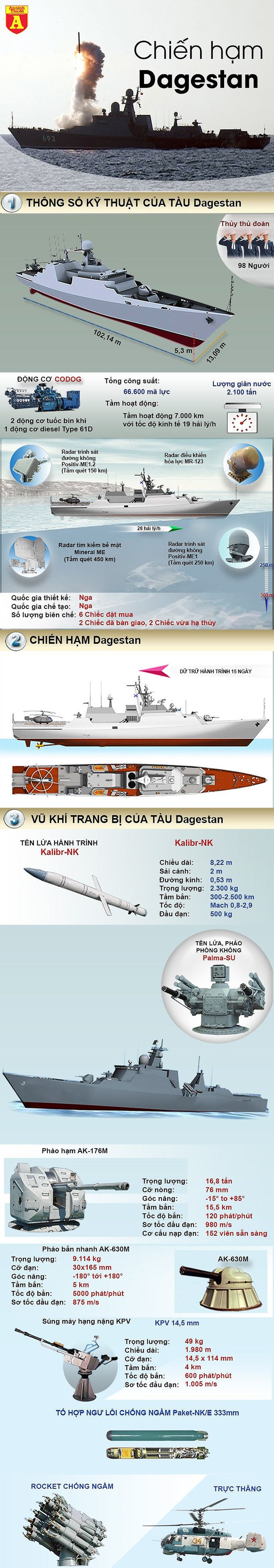 | Chiến hạm Dagestan của hải quân Nga phóng tên lửa Kalibr |