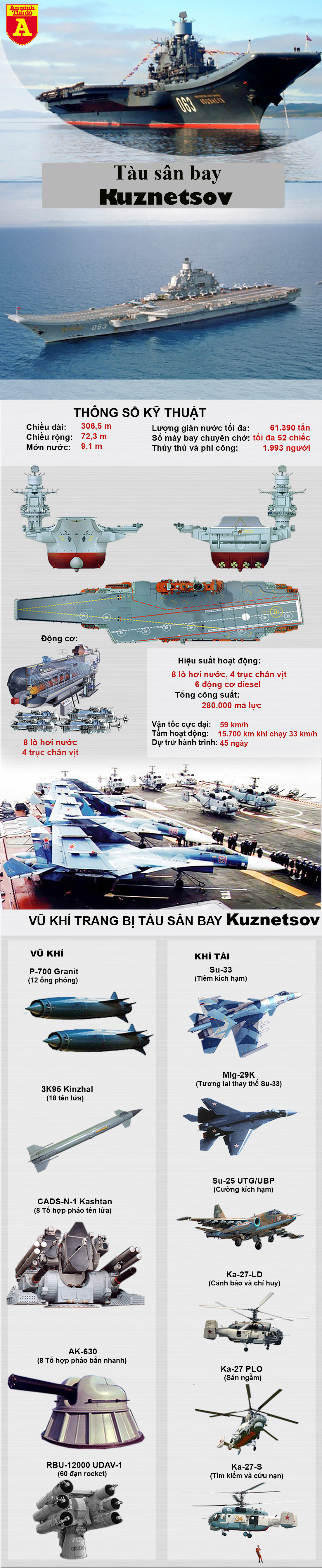 Tàu sân bay Admiral Kuznetsov là chiến hạm lớn nhất của Hải quân Nga và được xem là biểu tượng rõ rệt nhất cho sức mạnh quân sự của điện Kremlin. Tàu sân bay được khởi đóng tại xưởng đóng tàu Nam Nikolayev trên bờ biển Đen thuộc Ukraina vào năm 1985, đến năm 1995 tàu được biên chế trong hải quân Liên bang Nga.