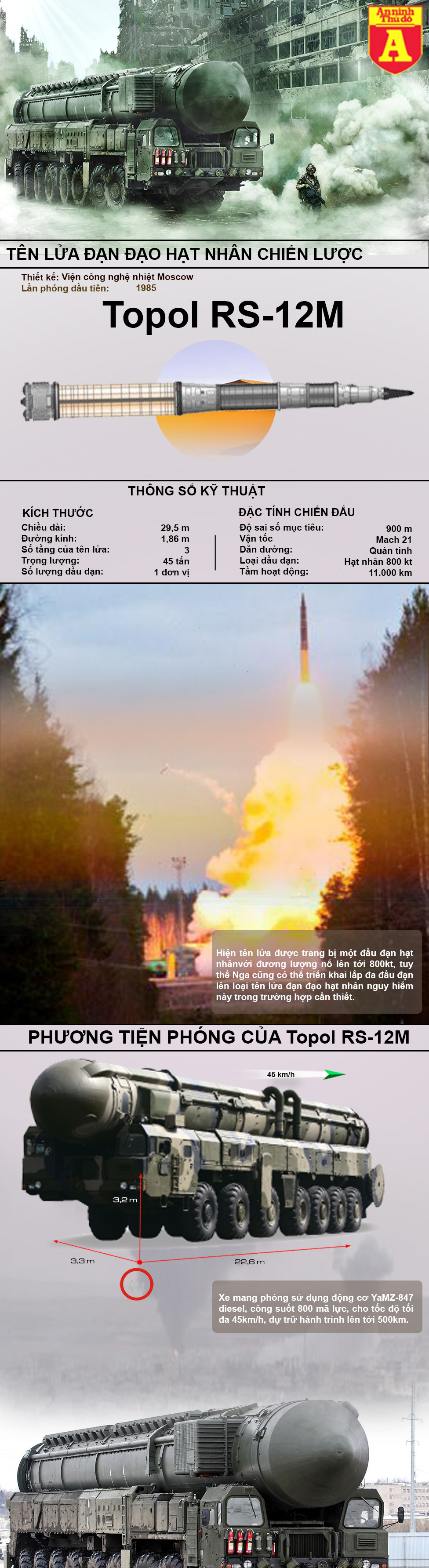 RS-12M Topol là tên lửa đạn đạo liên lục địa chiến lược của Nga với 3 tầng nhiên liệu rắn, có khả năng mang đầu đạn hạt nhân có sức công phá ở cấp độ megaton với tầm bắn 11.000 km. Tên lửa đạn đạo liên lục địa Topol được quân đội Liên Xô đưa vào biên chế từ năm 1985, sau khi Liên Xô tan rã, quân đội Nga là lực lượng sở hữu nhiều loại tên lửa này nhất.