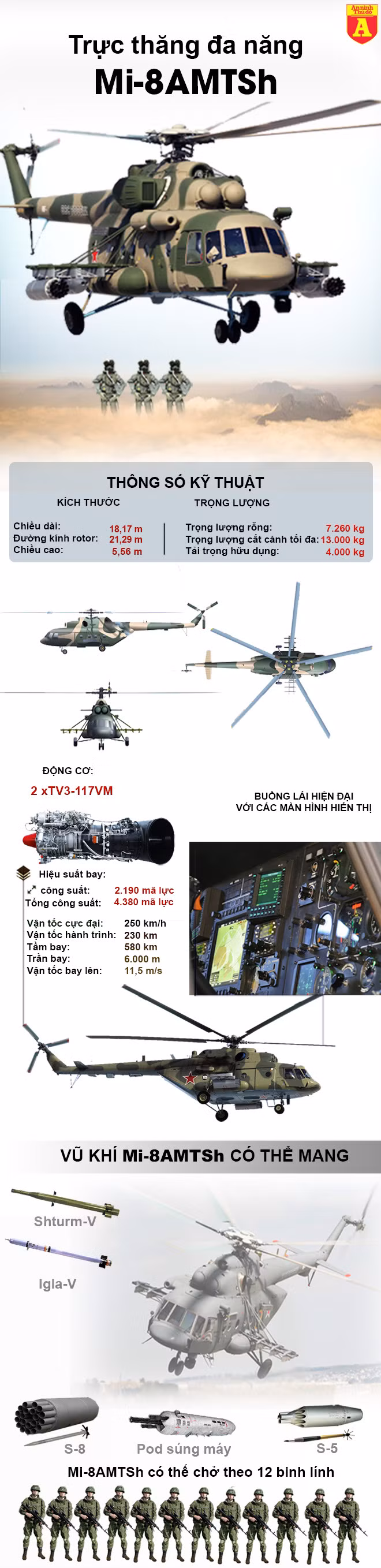 Điều đáng sợ của loại trực thăng này là nó có thể chiến đấu tiệm cận với "xe tăng bay" Mi-24, bên cạnh chức năng vận tải quân và hàng hóa như Mi-8. Nga tiếp tục nhận thêm trực thăng đa năng mới nhất Mi-8AMTSh biệt danh "Kẻ hủy diệt" sẽ giúp gia tăng sức mạnh của lực lượng trực thăng đa năng của mình, trong bối cảnh căng thẳng tại Syria cũng như những đối thủ tiềm năng đang ngày một nóng lên, rất có thể Nga sẽ tăng cường phi đội này sang chiến trường Trung Đông để tiêu diệt phiến quân, cũng như ngầm gửi thông điệp rắn tới đối thủ.