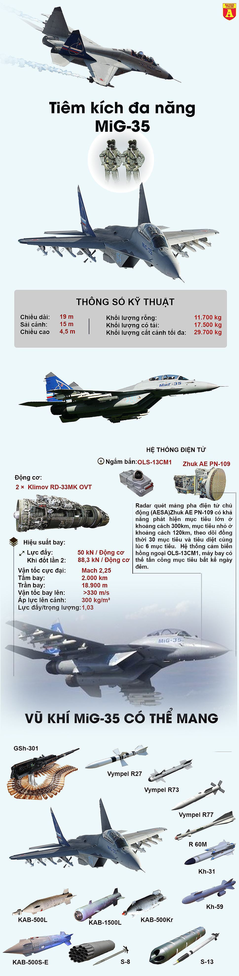 Nga phát triển máy bay Mig-35 từ đầu những năm 2000 với việc tích hợp các công nghệ hàng không hiện đại trên khung thân máy bay chiến đấu đa năng Mig-29. Điểm đáng chú ý là Mig-35 được trang bị hệ thống ra-đa mảng định pha chủ động (AESA) Zhuk-A cải thiện tầm quét, số mục tiêu theo dõi và khả năng hoạt động ở môi trường đối kháng điện tử mạnh. Theo như các chuyên gia cho biết, nó là sự phát triển có kế thừa từ những chiếc máy bay MiG-29K/KUB và MiG-29M/M2, được trang bị hệ thống radar, điện tử và vũ khí nâng cấp.