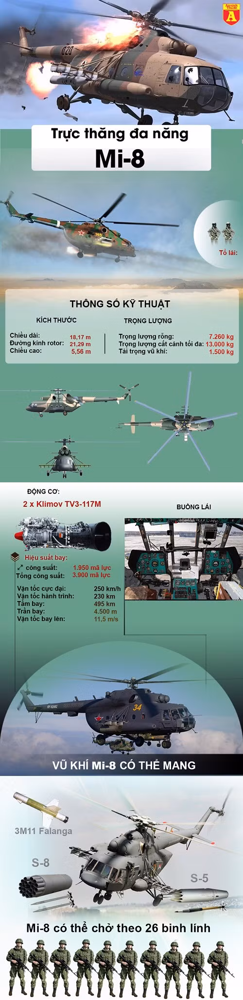 Hơn 12.000 chiếc máy bay trực thăng đa chức năng Mi-8 đã được sản xuất với hơn 2.800 chiếc được xuất khẩu và chúng hiện phục vụ trong lực lượng không quân hơn 50 nước.