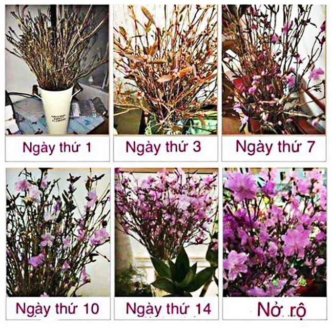 Và sau khi cắm vào nước khoảng 7 ngày đỗ quyên khô ngủ đông bắt đầu nở