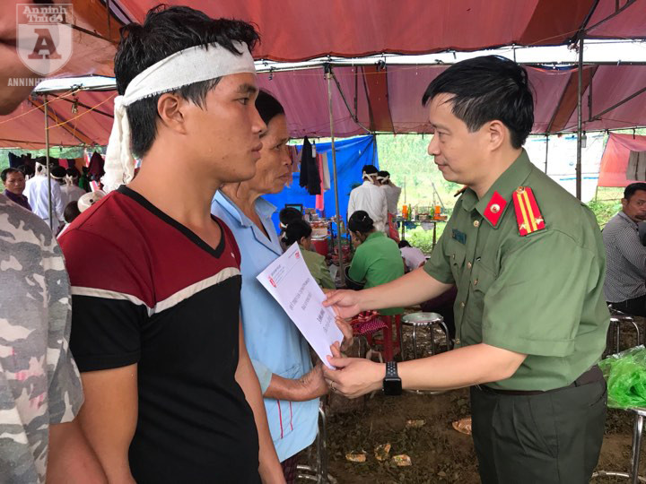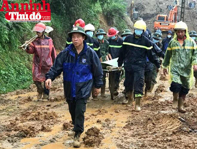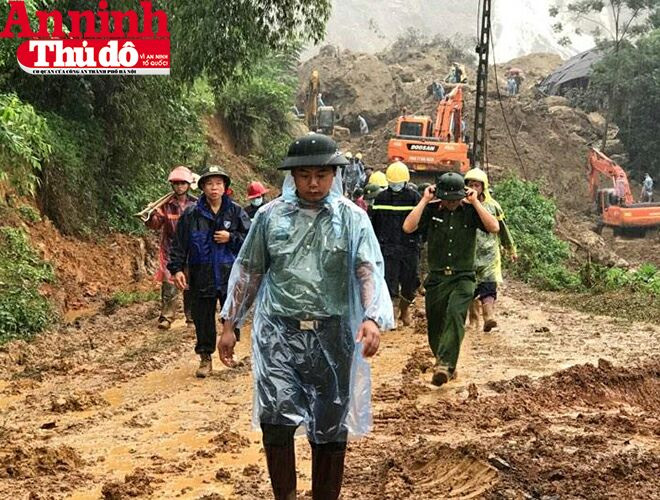 ANTD.VN - Ngày 12-10, trận mưa lớn kéo dài khiến đất đá đổ xuống, vùi lấp xóm Khánh, xã Phú Cường (Tân Lạc, Hòa Bình), khiến 18 người thiệt mạng. Ngay sau khi nhận thông tin, Thiếu tướng Đoàn Duy Khương, Ủy viên Ban Thường vụ Thành ủy, Giám đốc CATP Hà Nội, đã chỉ đạo Báo An ninh Thủ đô thành lập đoàn công tác tới khu vực vừa chịu thiệt hại nặng nề để cứu trợ. Tổng Biên tập Báo ANTĐ Nguyễn Thanh Bình dẫn đầu đoàn công tác có mặt tại khu vực xóm Khanh vào sáng nay 13-10-2017, đúng thời điểm hàng trăm cán bộ chiến sĩ lực lượng vũ trang cùng các phương tiện máy móc được huy động để tìm kiếm các nạn nhân, và đưa được nạn nhân thứ 10 ra khỏi hiện trường đổ nát.