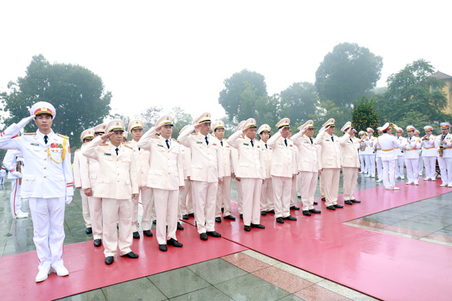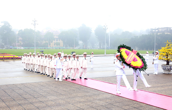 Đoàn đại biểu Đảng ủy Công an Trung ương, lãnh đạo Bộ Công an vào Lăng viếng Chủ tịch Hồ Chí Minh