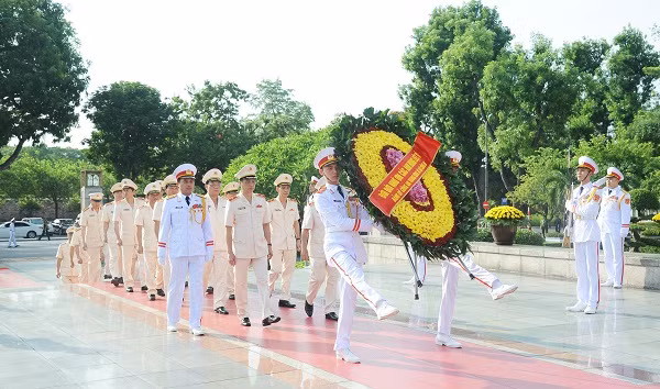 Trước anh linh Chủ tịch Hồ Chí Minh, Đoàn đại biểu Đảng ủy Công an Trung ương, Bộ Công an bày tỏ lòng thành kính, biết ơn vô hạn trước những công lao to lớn của Người đối với sự nghiệp cách mạng vẻ vang của Đảng và dân tộc Việt Nam nói chung, với lực lượng Công an nhân dân nói riêng; nguyện phấn đấu đi theo con đường mà Chủ tịch Hồ Chí Minh và Đảng đã lựa chọn; tiếp tục bảo vệ, phát triển và quán triệt, thực hiện tư tưởng Hồ Chí Minh; phát huy truyền thống anh hùng, vẻ vang, xây dựng lực lượng Công an nhân dân tuyệt đối trung thành với Đảng, Nhà nước và Nhân dân, xây dựng tổ chức bộ máy tinh gọn, hoạt động hiệu lực, hiệu quả, theo hướng “Bộ tinh, tỉnh mạnh, huyện toàn diện, xã bám cơ sở”, đấu tranh với các loại tội phạm, bảo đảm an ninh quốc gia, trật tự, an toàn xã hội, vì cuộc sống bình yên và hạnh phúc của nhân dân.