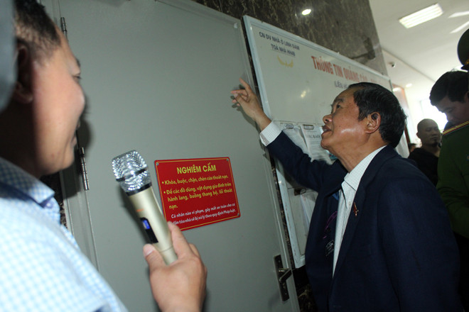 Một bảo vệ của kíp trực tại khu Tổ hợp chung cư HH Linh Đàm đang nêu các phương án xử lý trong một tình huống giả định xảy cháy với Đoàn giám sát