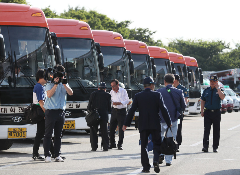 14 xe buýt đã xuất phát từ thành phố cảng Sokcho, Đông Nam Hàn Quốc và được cảnh sát hộ tống tới biên giới chia cắt bán đảo Triều Tiên kể từ sau chiến tranh. Theo kế hoạch, sự kiện đoàn tụ các gia đình ly tán sẽ diễn ra lúc 15h địa phương (13h Việt Nam).