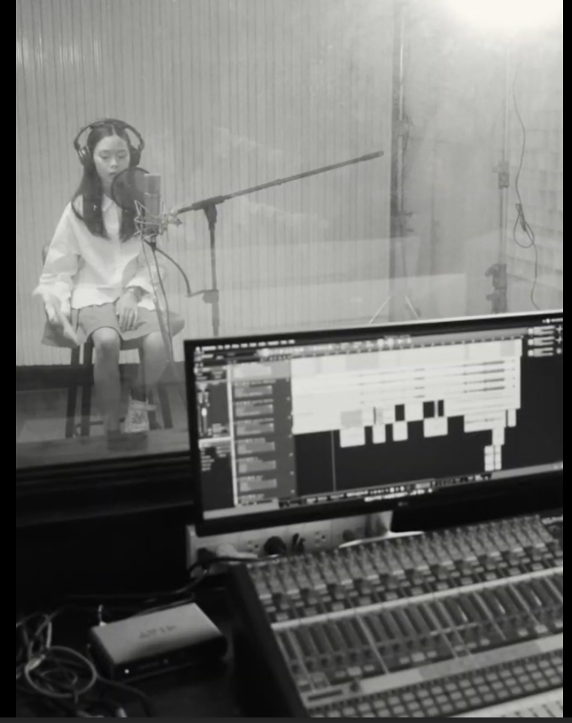 | Đoan Trang cũng trực tiếp hướng dẫn con trong quá trình thu âm |