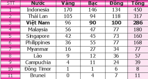 Tại môn quyền Anh, võ sỹ thuộc đơn vị Bộ Công an là Lương Văn Toản đã xuất sắc giành chiến thắng trong trận chung kết hạng cân 81kg để mang về tấm HCV duy nhất cho đội. Đó cũng là tấm HCV cuối ngày thi đấu hôm qua. Như vậy, với 96 HCV, 90 HCB, 100 HCĐ đoàn TTVN vững ngôi thứ 3 toàn đoàn sau 10 ngày tranh tài.