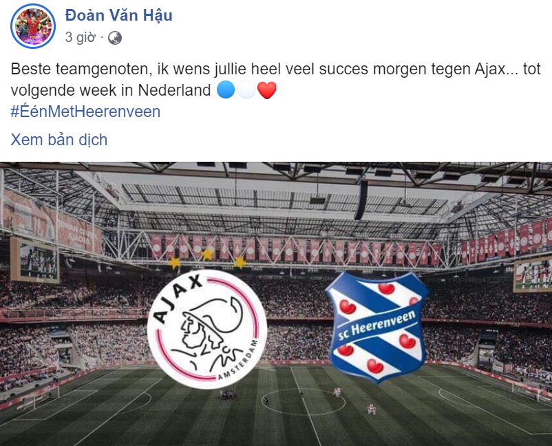 Không thể góp mặt cùng đồng đội mới trong chuyến đi khó khăn này, Đoàn Văn Hậu đã gửi thông điệp nhắn nhủ từ xa trên trang cá nhân bằng tiếng Hà Lan.
