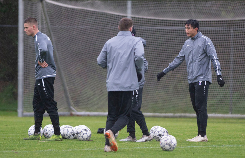 Đoàn Văn Hậu (phải) trong buổi tập đầu năm mới của Heerenveen