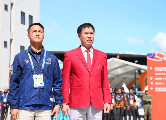 "Nhiều khả năng thể thao Việt Nam sẽ có HCV trong ngày thi đấu đầu tiên, nhất là ở nội dung cá nhân các môn lĩnh ấn tiên phong như wushu, cử tạ, kurash, arnis", Trưởng đoàn Trần Đức Phấn nhận định.