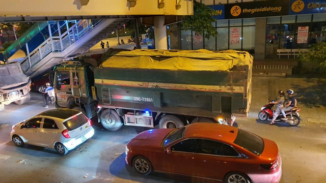 Ghi nhận của phóng viên cho thấy, trên đường Trần Phú (quận Hà Đông, TP Hà Nội), từ khoảng 21h đêm, cả tuyến phố ầm ỹ tiếng còi xe tải nặng. Trong đó, phần lớn là xe tải chở đất đá, phế thải xây dựng dù có che đậy bằng tấm bạt nhưng khá sơ sài nên đất cát vương vãi khắp nơi. Phần lớn xe tải trọng lớn hoạt động trên phố Trần Phú (Hà Đông) mang logo “Trường Kỳ”.