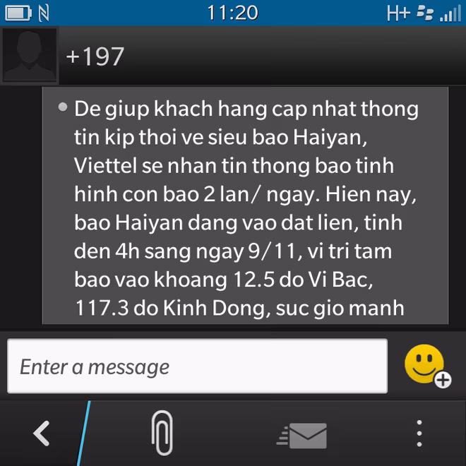 Tin nhắn thông tin về bão Haiyan được gửi tới 6 triệu khách hàng