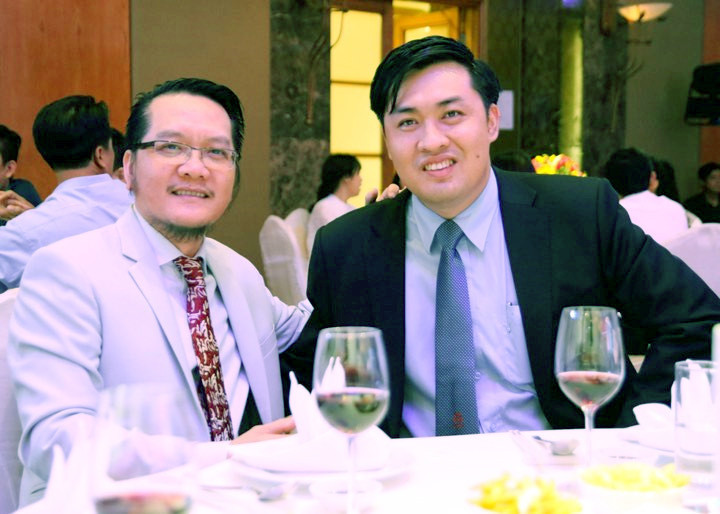 Doanh nhân Trần Văn Liêng (trái) tranh cử vị trí Phó chủ tịch tài chính VFF theo giới thiệu của nguyên Tổng giám đốc VPF Cao Văn Chóng