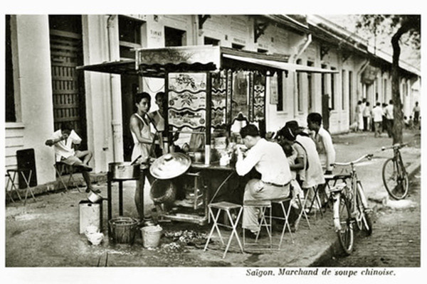 Chẳng hạn, bức ảnh về những gánh phở, hủ tiếu, mỳ gõ rong nhộn nhịp ven đường đưa người xem đến gần với cuộc sống thường nhật của người Việt xưa.