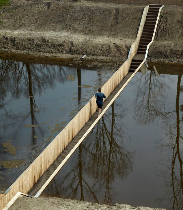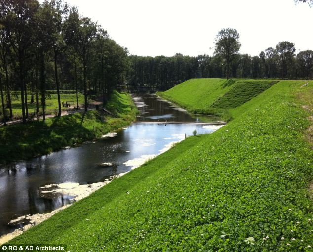 Lấy ý tưởng từ những con hào được xây dựng quanh pháo đài vào khoảng thế kỷ 17, các kỹ sư người Hà Lan hiện đại đã nghĩ ra cách thiết kế một con đường nằm lọt thỏm ngay giữa lòng sông. Nếu nhìn bên trên, hẳn đó là một con đường vô hình được ngụy trang. Từ con đường này, những người đi qua nó hầu như sẽ không bị phát hiện dưới mực nước.