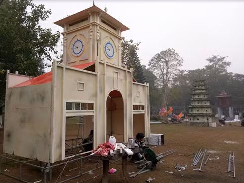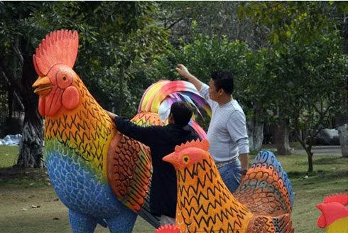 Các nghệ nhân đang gấp rút hoàn thiện những tác phẩm trang trí đầy ấn tượng phục vụ lễ hội hoa Xuân Ecopark 2017